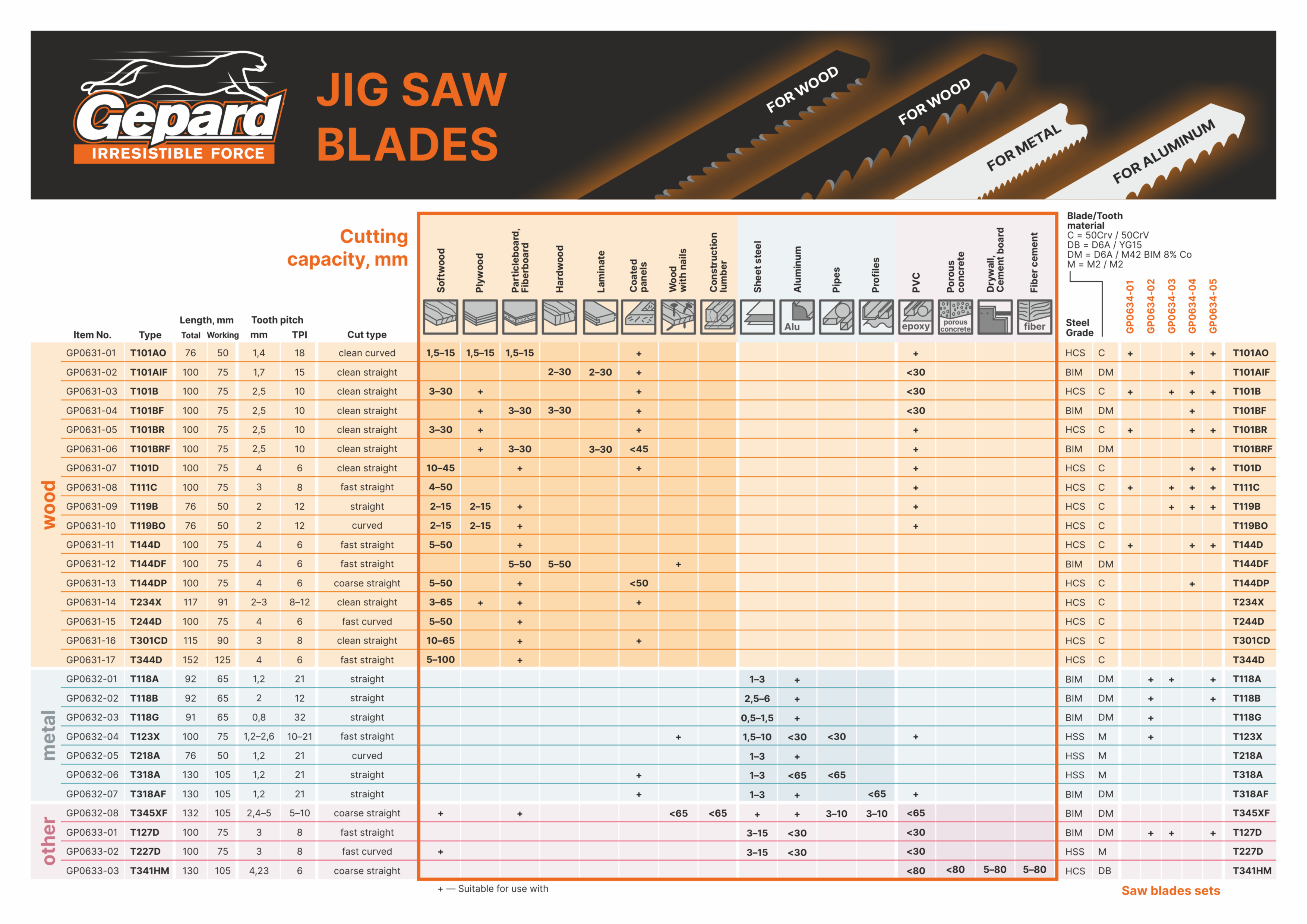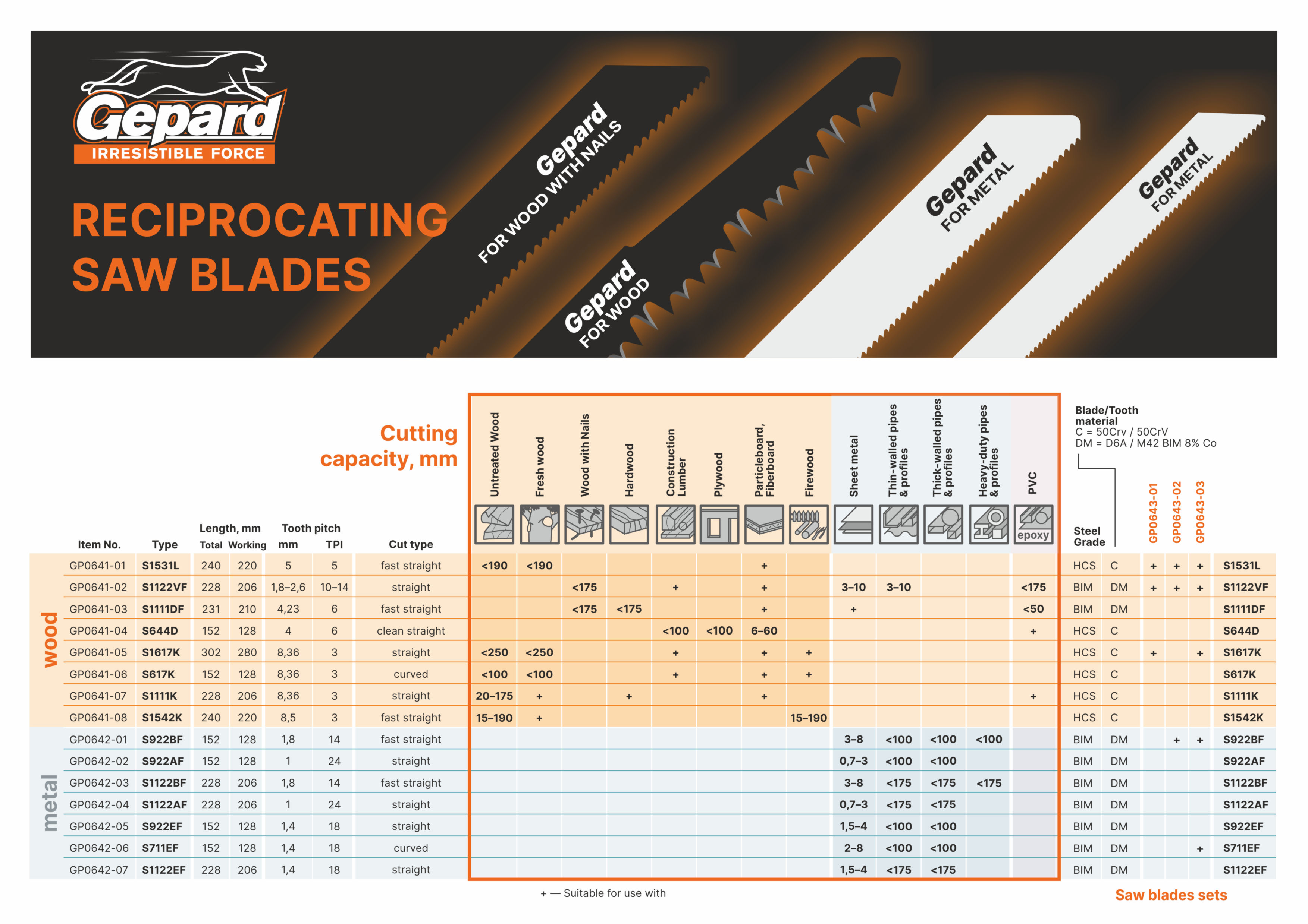 Reciprocating saw blades GEPARD