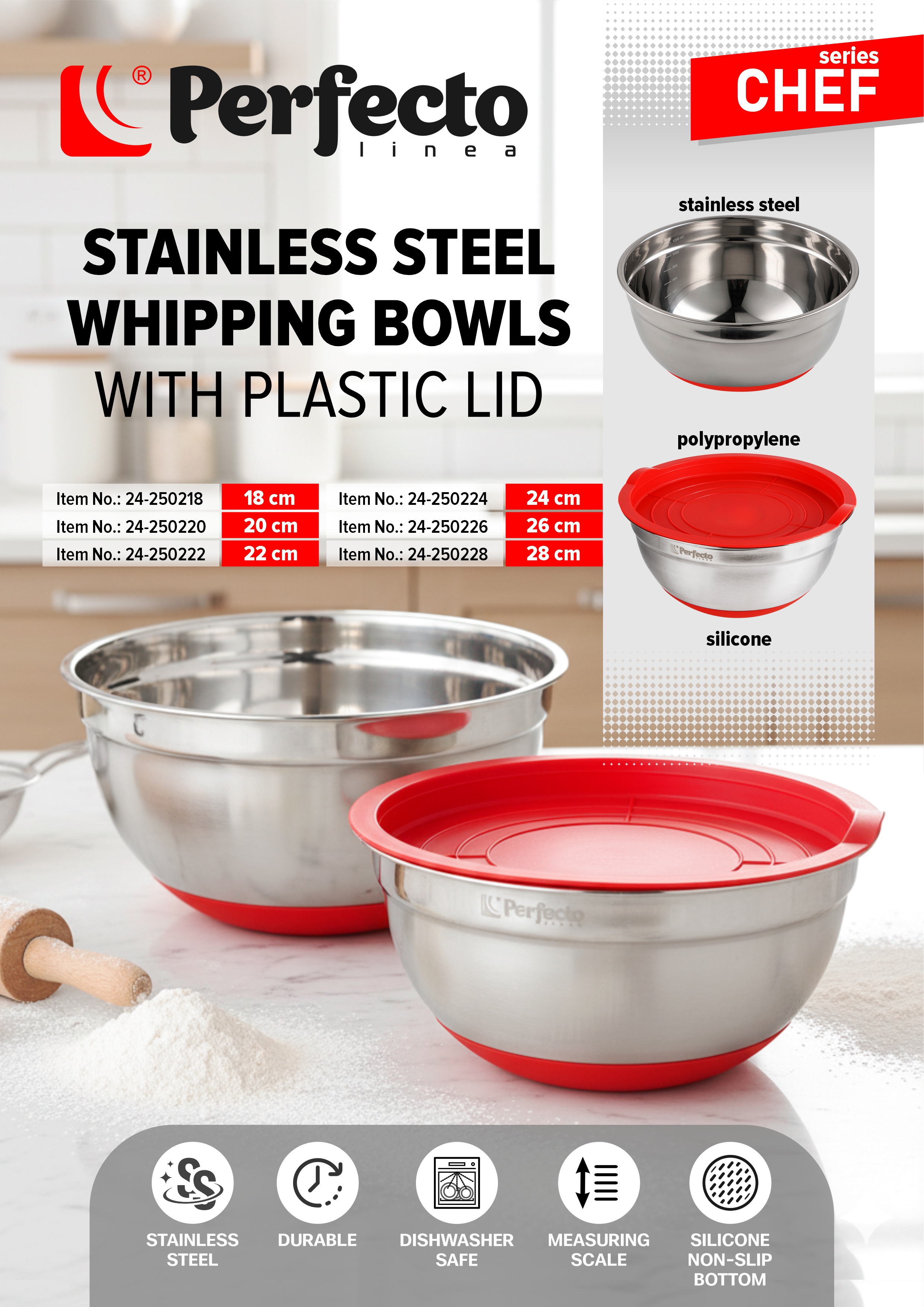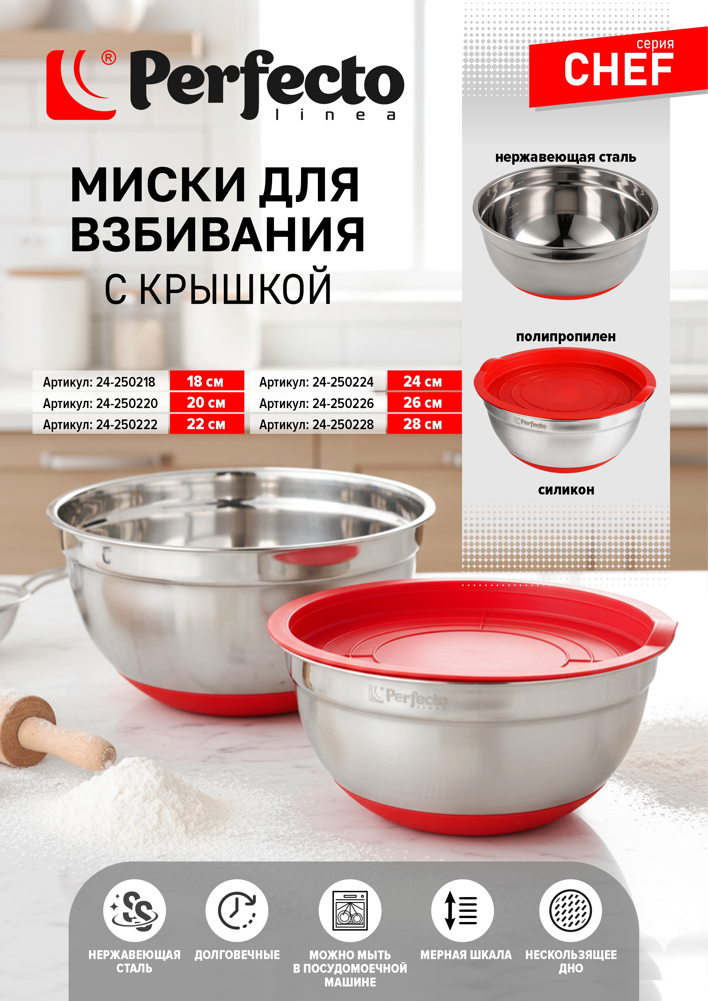 Миски для взбивания из нержавеющей стали, серия CHEF