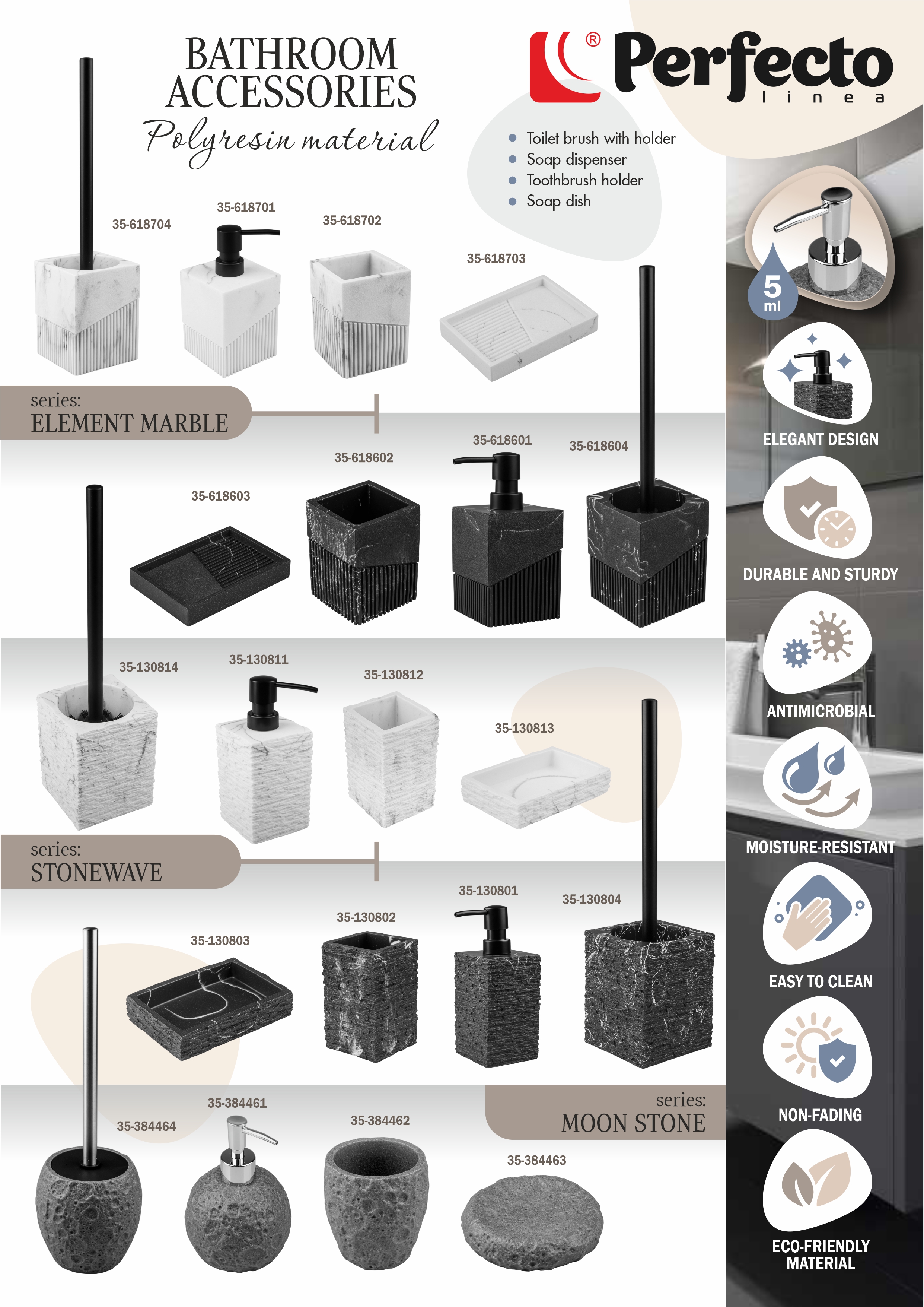 Bathroom accessories, ELEMENT MARBLE, STONEWAVE, MOON STONE