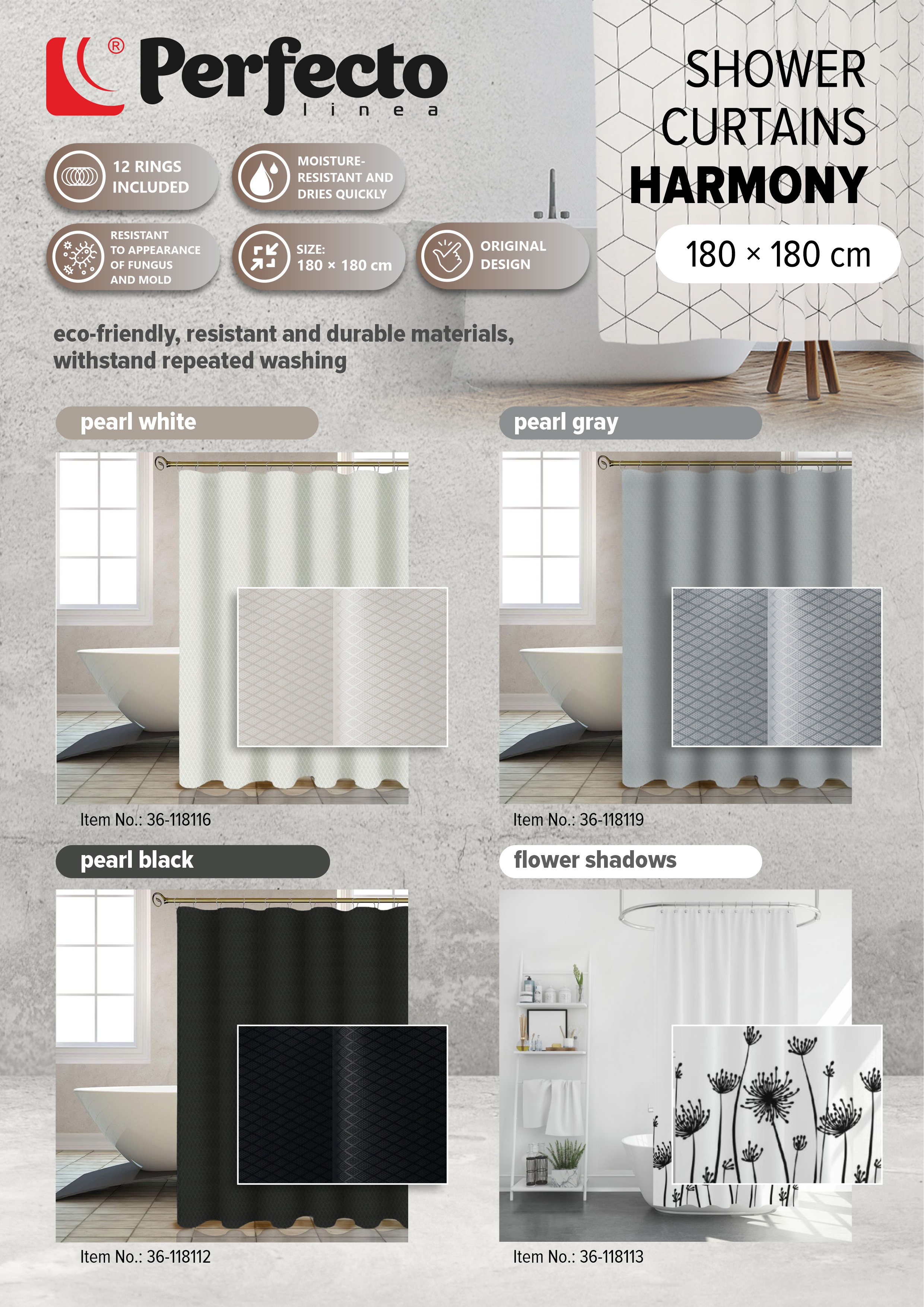Shower curtain (12 rings included), Harmony