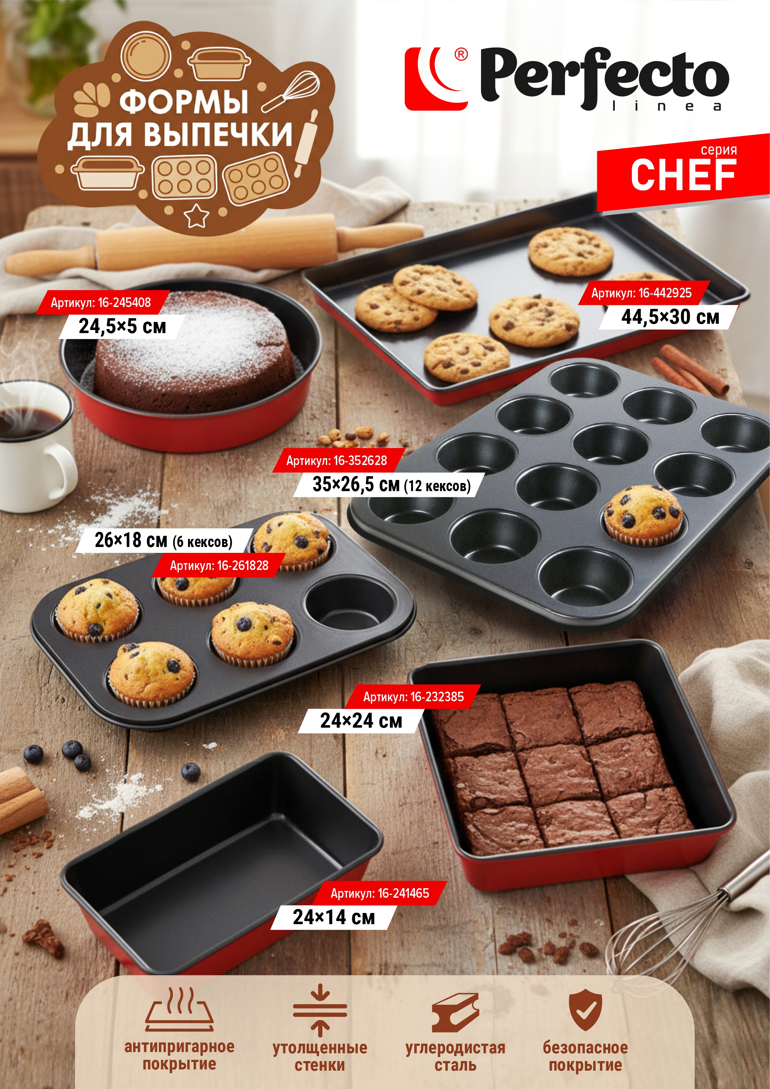 Формы для выпечки, антипригарное покрытие, CHEF